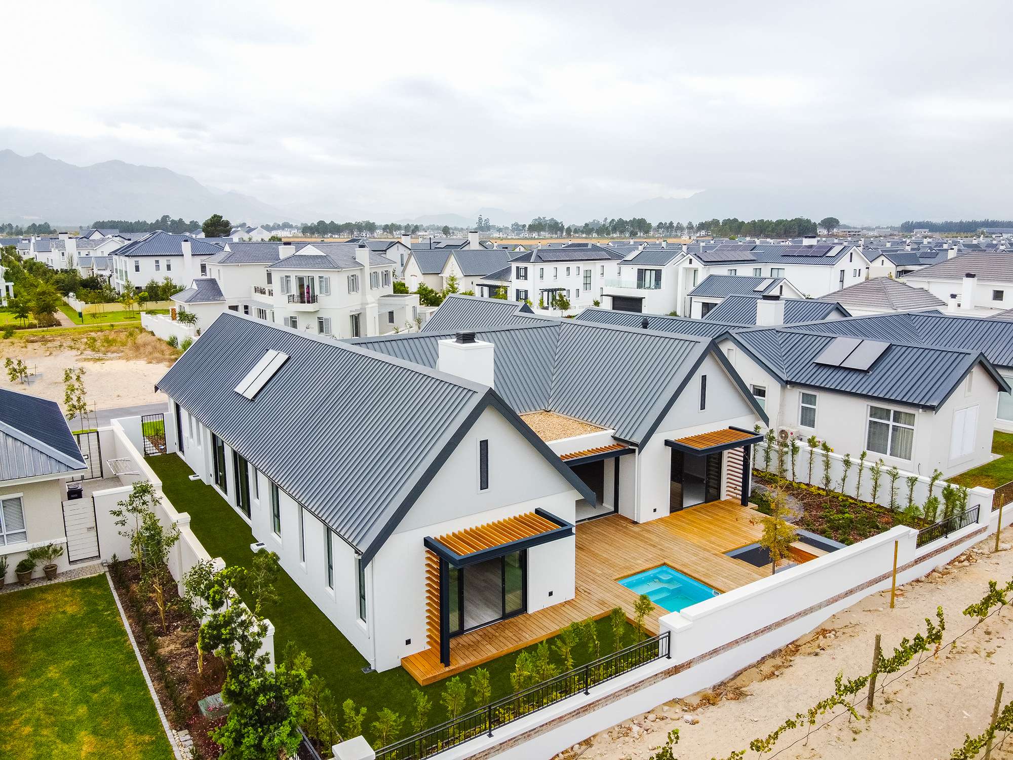 This bespoke residence was constructed to reflect our client’s vision and demonstrate our commitment to quality, attention to detail, and innovative design. Every element of the home was carefully planned and executed to align with Val de Vie’s architectural standards, resulting in a property that combines elegance, functionality, and lasting value.