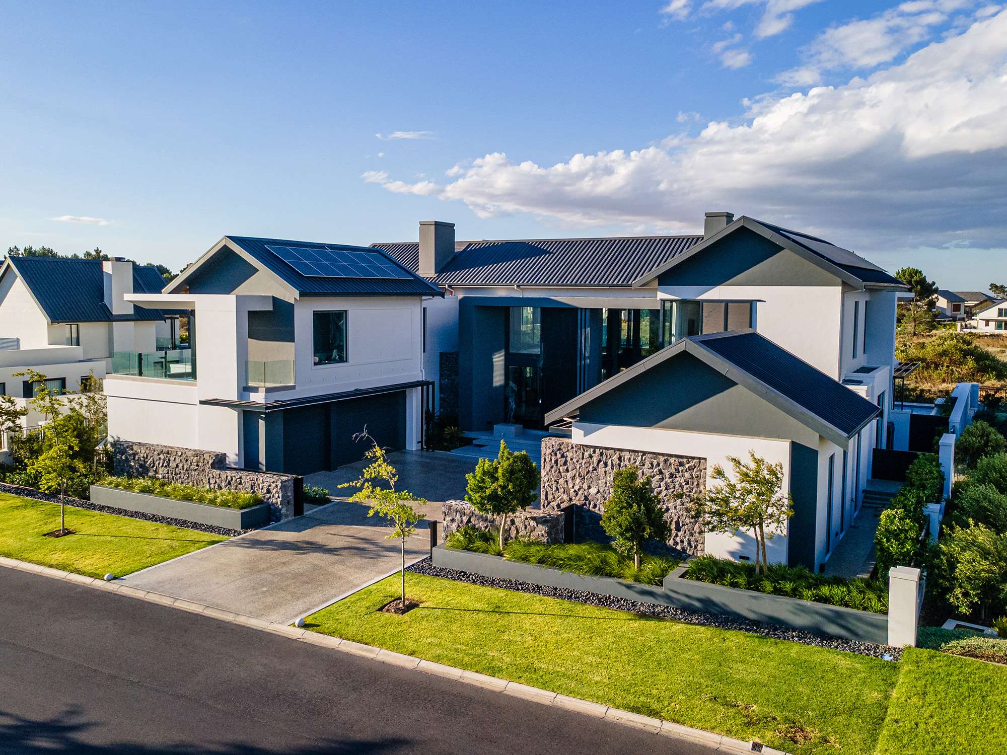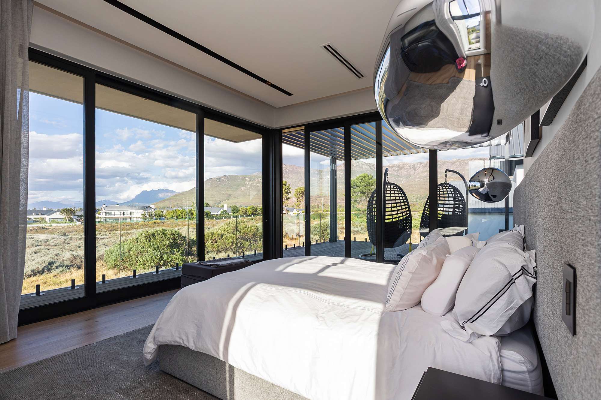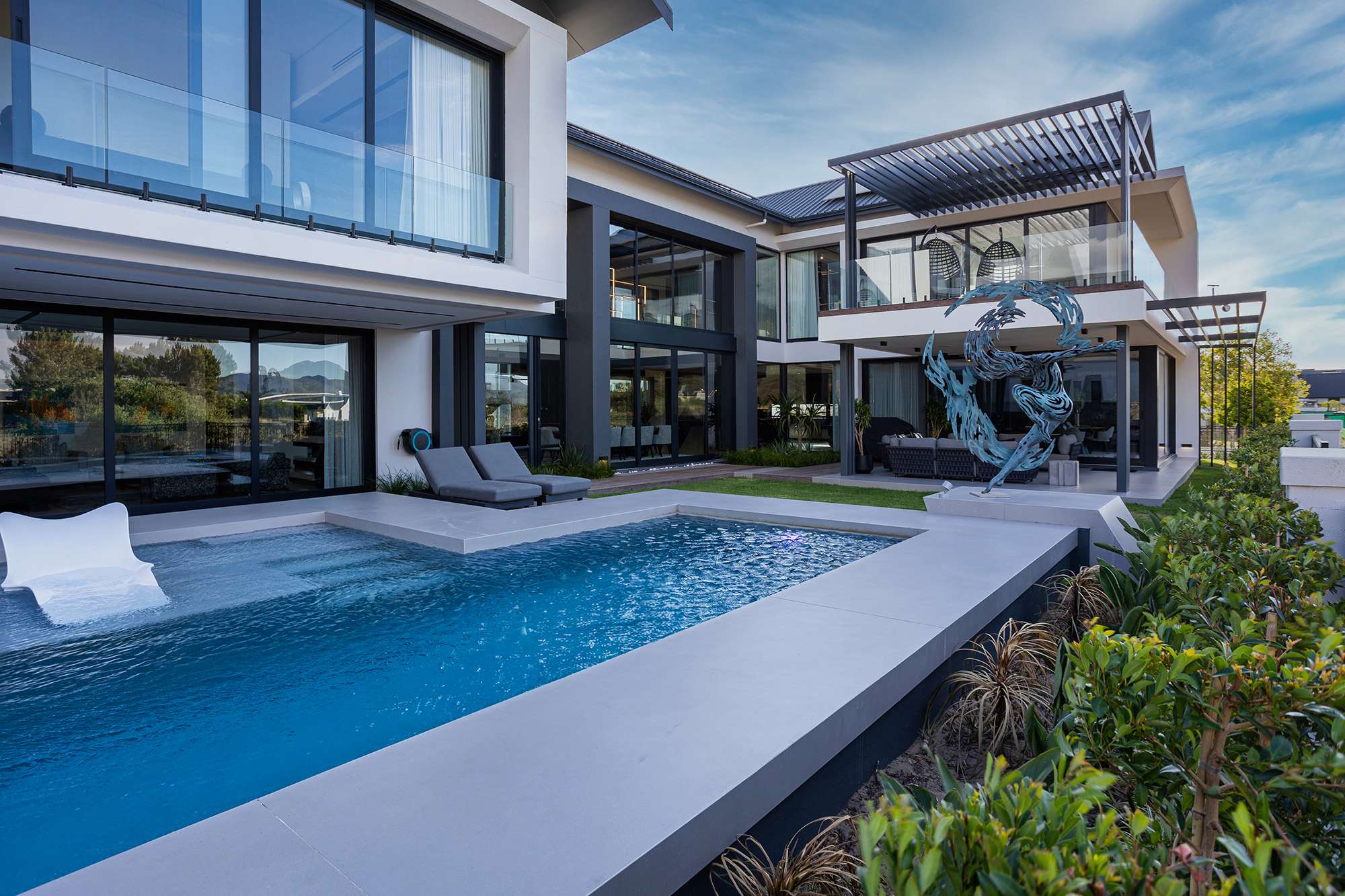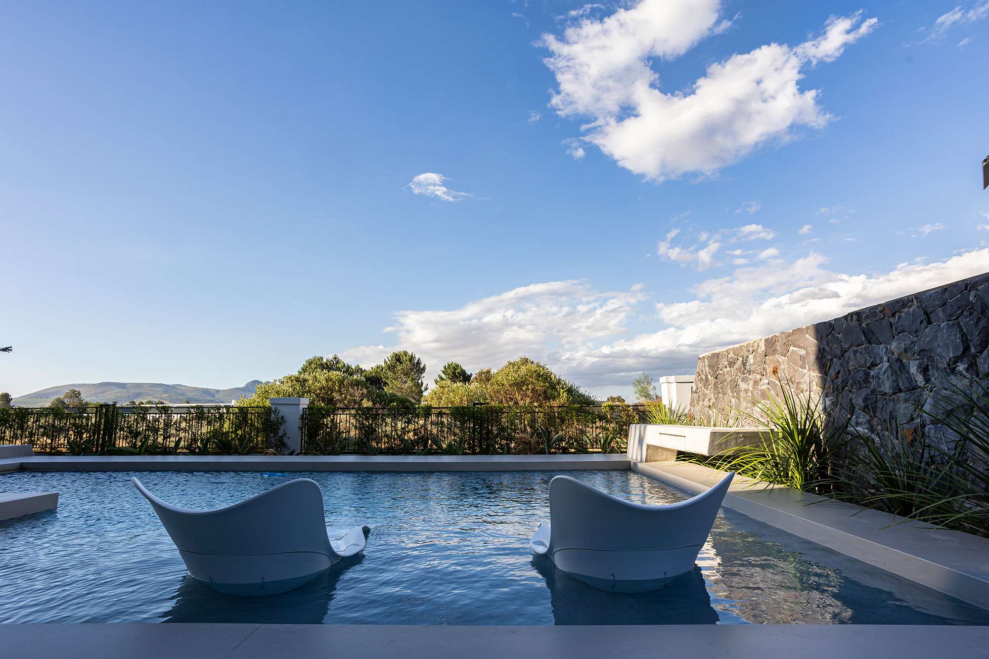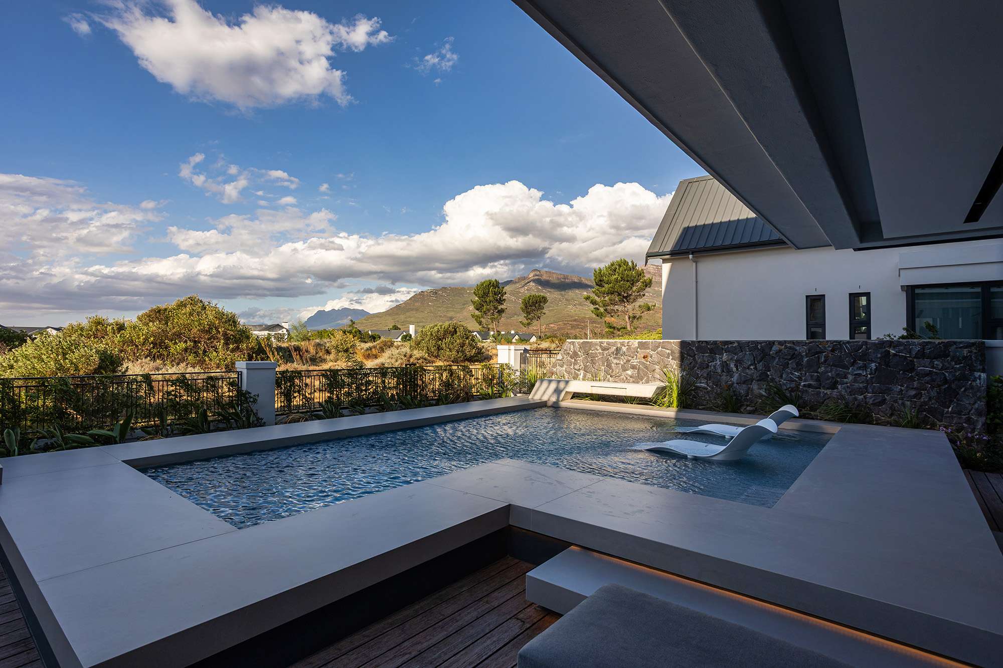 From its bold lines and expansive glass features to the harmonious integration of natural stone and sleek finishes, every detail reflects meticulous planning and execution. Set against the breathtaking backdrop of the Paarl mountains, this home offers both sophistication and serenity.
